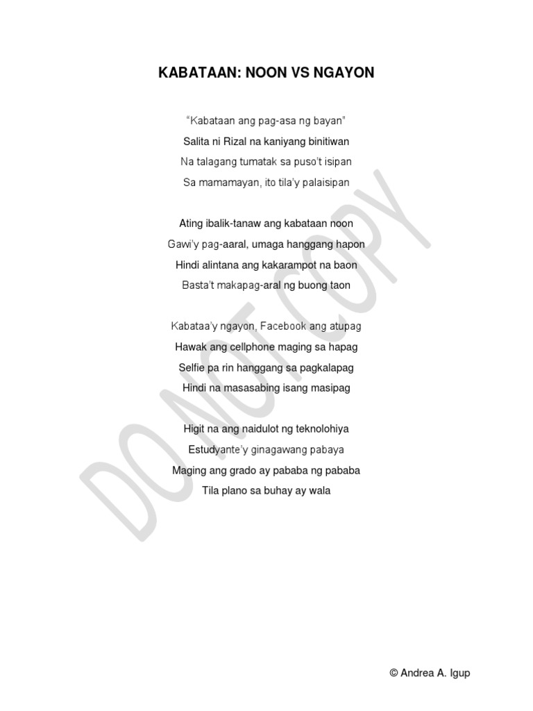 Ang kabataan ay pag-asa ng ating bayan in english. The youth today are so different. Ang mga kabataan din noon ay tutok sa. Read more comments irenexoxo.