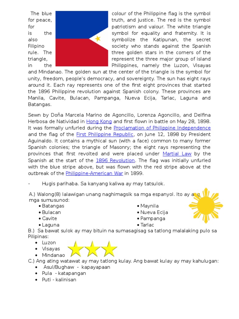 4272021 Ano ang kahulugan ng mga kulay sa watawat ng pilipinas.