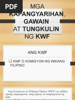 Maka-kaasa kayo sa aking walang sawa na pagtangkilik sa lahat ng inyong pagsisikap hinggil sa mahalagang bagay na ito. MGA KAPANGYARIHAN GAWAIN AT TUNGKULIN NG KWF. Papel ng Komisyon sa Wikang Filipino sa Pagpapaunlad ng Kurikulum sa Filipino.