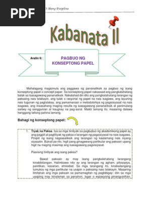 2010-02-19 Ang Pagbuo Ng Konseptong Papel 1. 2020-12-23 Sa pag-oorganisa ng papel isinasaalang-alang ang tesis at ang mga datos o impormasyong nasuri. Mahalaga na sigurado sa nagiging desisyon sa buhay sapagkat ito ang susi upang makamit niya ang layunin niya sa kanyang buhay.