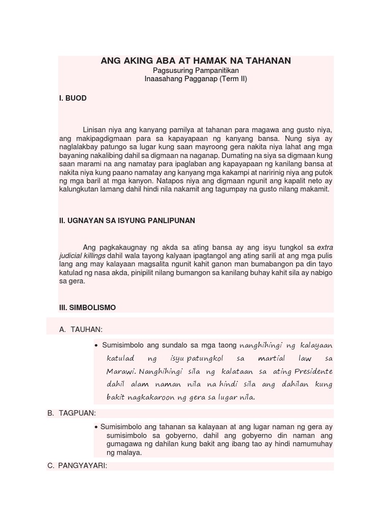 Ang Aking Aba At Hamak Na Tahanan Pdf