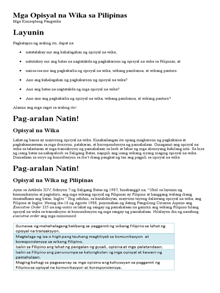 1 Wikang Opisyal At Wikang Pangturo Pdf