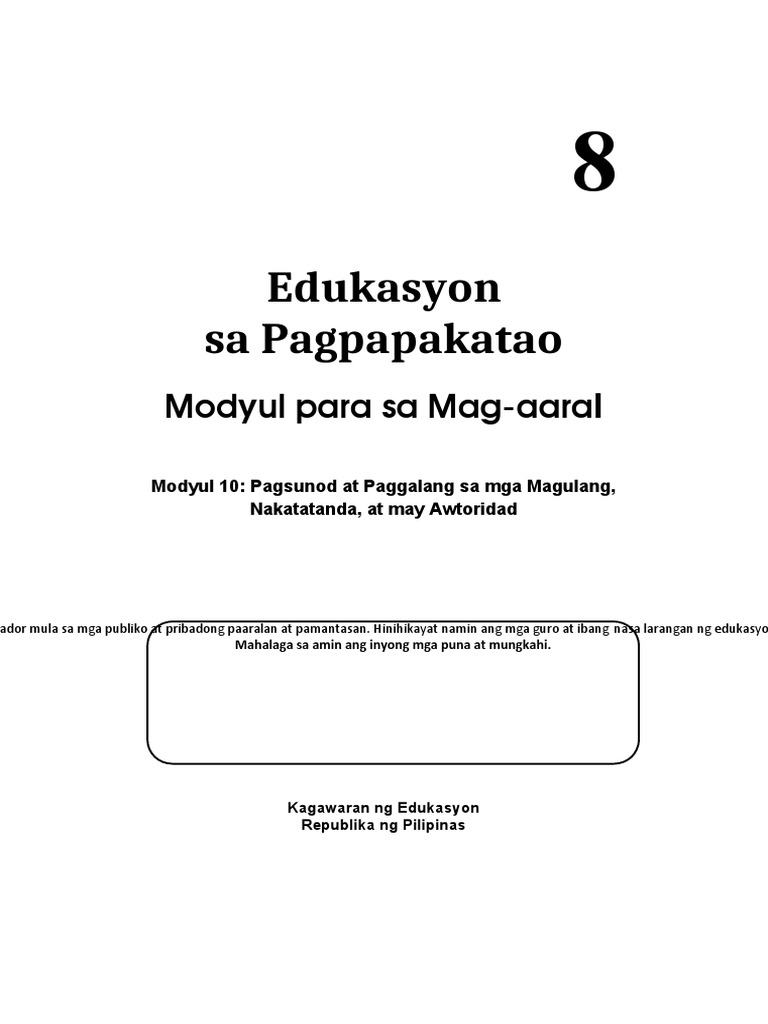 Edukasyon Sa Pagpapakatao 8 Modyul 10 Para Sa Mag Aaral Pagsunod At Pagga Pdf